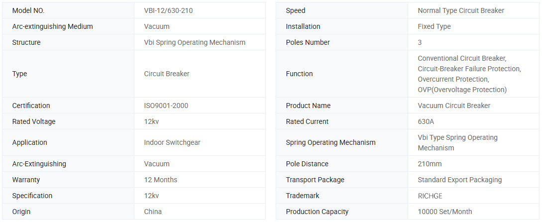 Внутренняя вакуумная цепь VBI-12 в помещении представляет собой трехфазный AC 50 Гц, номинальное напряжение 12-километрового внутреннего устройства, для промышленных и горных предприятий, электростанций и подстанций в качестве целей управления и защиты электрического оборудования, а также для частой эксплуатации места, которые объединили технологию корпорации ABB в Швейгралентии и разработанной в Китае. Продукт соответствует стандартному GB1984 и IEC62271-100.