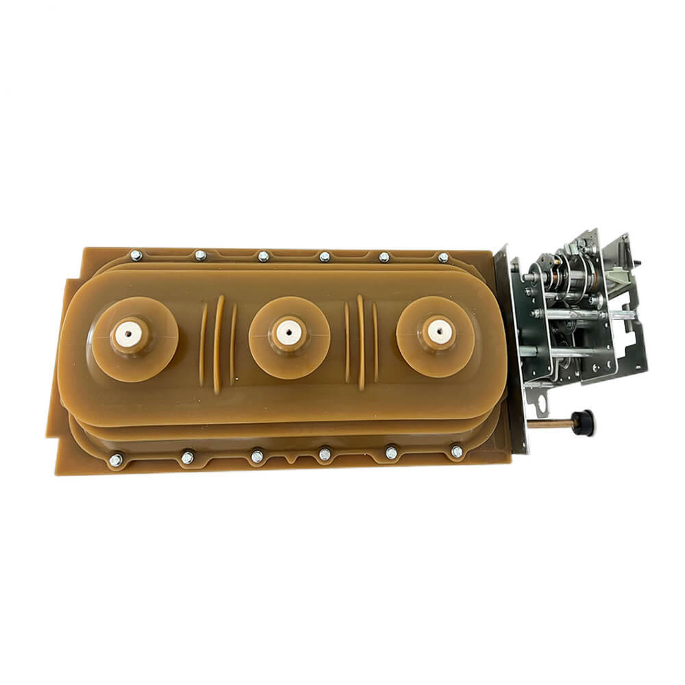4. Загрузите выключатель, устанавливает ворота, открытие, переключатель заземления три на один, заполненный газовым газом SF6, инкапсулированным в корпус эпоксидной смолы, трехпозиционную блокировку, компактную структуру, высокую безопасность и надежность.