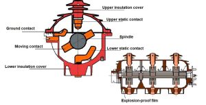 1. Загрузить выключатель выключателя адаптирует двойной перелом, вращающаяся контактная контактная структура, со следующими тремя видами операционных состояний: закрытие, открытие, заземление.