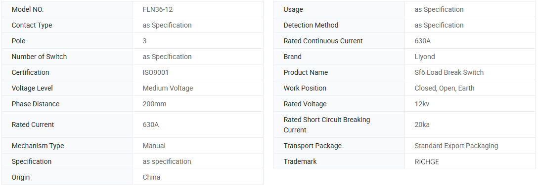 FLN36-12KV SF6 переключатель нагрузки представляет собой оборудование для выключателя для распределительного устройства среднего напряжения, используя газ SF6 в качестве погашения дуги и изоляционной среды. Есть три рабочей позиции: открытая, закрытая, земля в переключателе. Компактный размер, легкая установка и тонкая адаптивность к окружающей среде делают коммутатор подходящим для многих различных приложений.