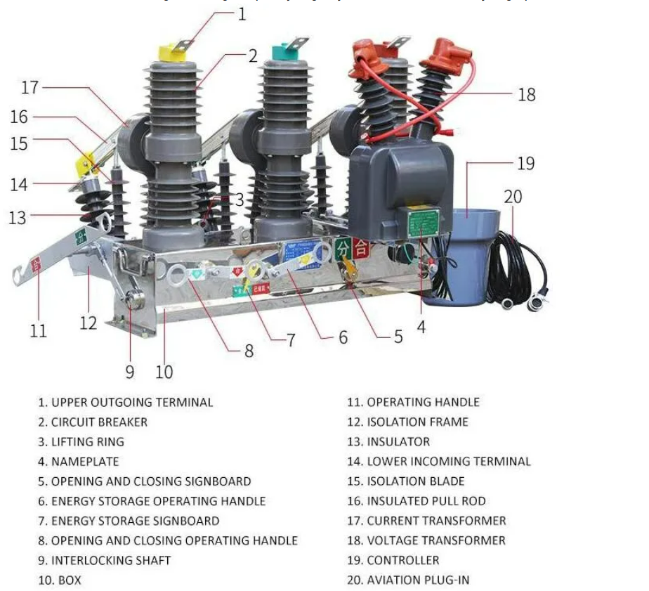 5. Операции открытия и закрытия автоматического выключателя могут работать вручную или электрически или удаленно. Он может быть сопоставлен с контроллером для реализации автоматизации распределения мощности, а также может быть объединена с контроллером Recloser, чтобы сформировать Recloser.