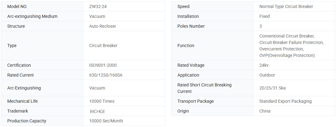 ZW32-24 Высоковольтный вакуумный автоматический выключатель вакуума на открытом воздухе (в дальнейшем, называемая как выключатель цепи), является номинальным напряжением 24 кВ, 50 Гц трехфазного оборудования для распределения электроэнергии.