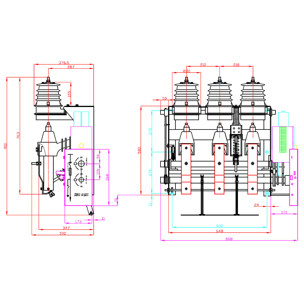 FKN12-12D/630-20 Высоковольтный переключатель AC AC AC представляет собой трехфазное высоковольтное распределительное устройство с номинальным напряжением 12 кВ и номинальной частотой 50 Гц. Он используется для переключения тока нагрузки, тока с замкнутым контуром, трансформатора без нагрузки и тока зарядки кабеля, выключенного комбинированного тока короткого замыкания. Нагрузочный переключатель, оснащенный заземляющим переключателем, может выдерживать ток короткого замыкания.