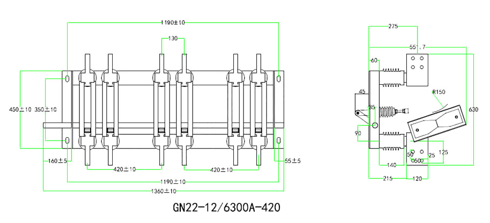 Эта серия переключателей работает с помощью ручного механизма CS6-2 ручного механизма или электрического рабочего механизма, и может быть установлен на левой или правой стороне отключения.