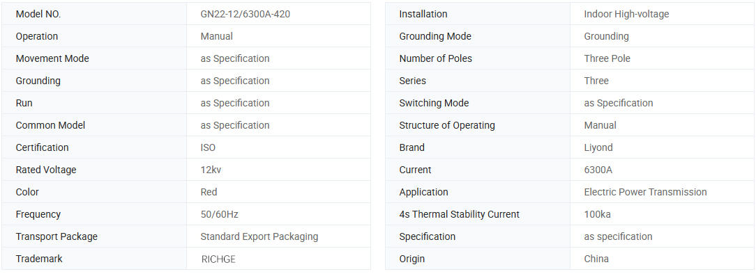 Этот продукт представляет собой сильноточный разъединитель с трехфазной конструкцией общего нижнего ножа. Он использует прототип механического замка с двухэтапным действием закрытия и контакта, обеспечивающим износостойкий контакт, небольшое рабочее усилие, высокое контактное давление и хорошую динамическую термическую стабильность.
