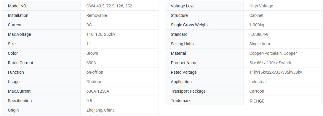Высоковольтный разъединитель переменного тока GW4-12(40,5) для наружного применения используется для размыкания и замыкания цепи с напряжением, но без нагрузки, 50/60 Гц, энергосистема 12(40,5) кВ. Он соответствует стандартам IEC129-1984, разъединителю и заземлителю переменного тока, GB1985 и другим соответствующим стандартам.