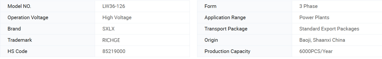 Этот продукт использует газ SF6 в качестве дуговой погашения, так и изолирующей среды. Он оснащен новейшей технологией самостоятельной засобии дуги и оснащена новым пружинным механизмом. LW36-126/3150-40 предлагает длительный электрический срок службы, низкие усилия по эксплуатации, низкий уровень шума и высокую надежность, что делает его наиболее надежным выбором для высотных областей или мощных систем 132 кВ. Это также может заменить импортируемые продукты того же типа.