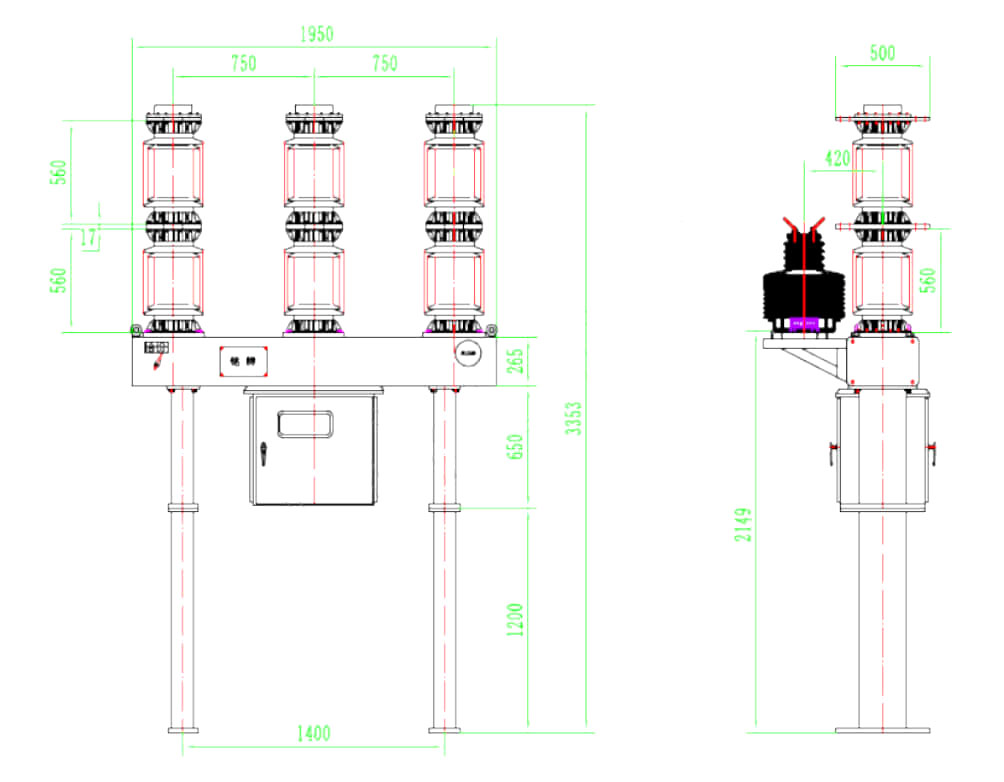 Продукт обладает превосходной производительности, используя камеру для газа с дугой типа давления, электрический срок длинный, не заменяет гексафторидный газ серы, механическая надежность высока, механический срок службы длинный может работать часто; Каждый набор может быть оснащен 6-12 текущими трансформаторами для выбора пользователя. Этот продукт принимает новый измеритель плотности указателя MKZ Model SF6, на показания давления не влияет изменение температуры, простое в использовании.