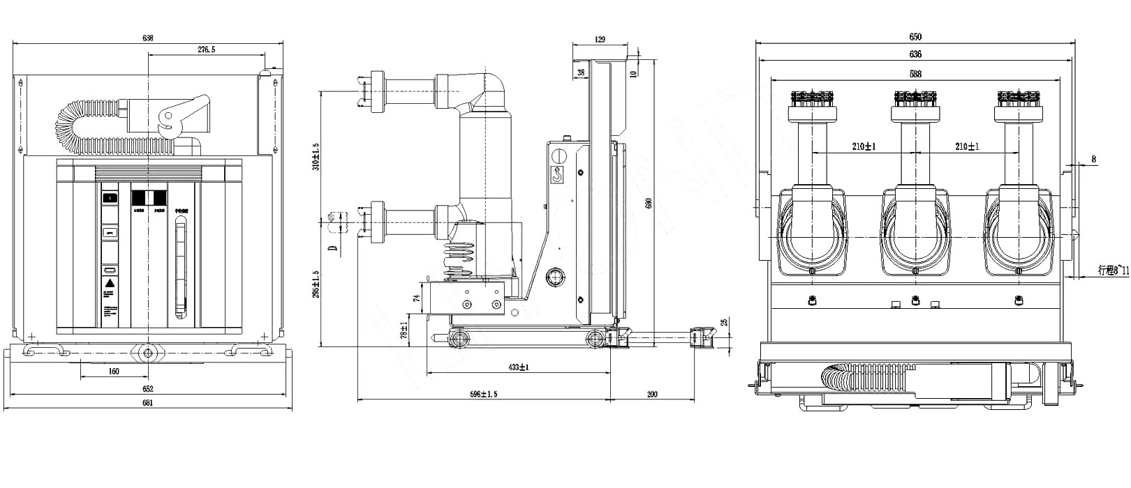 Размеры VSG-12/2000A Вакуумной схемы с фиксированным полюсом с фиксированным полюсом с фиксированным полюсом