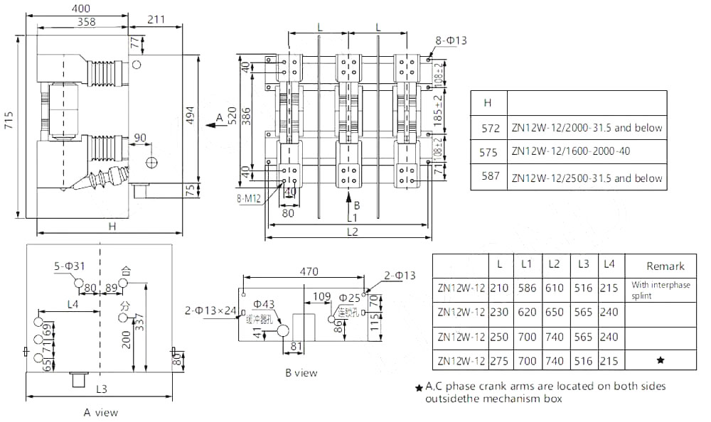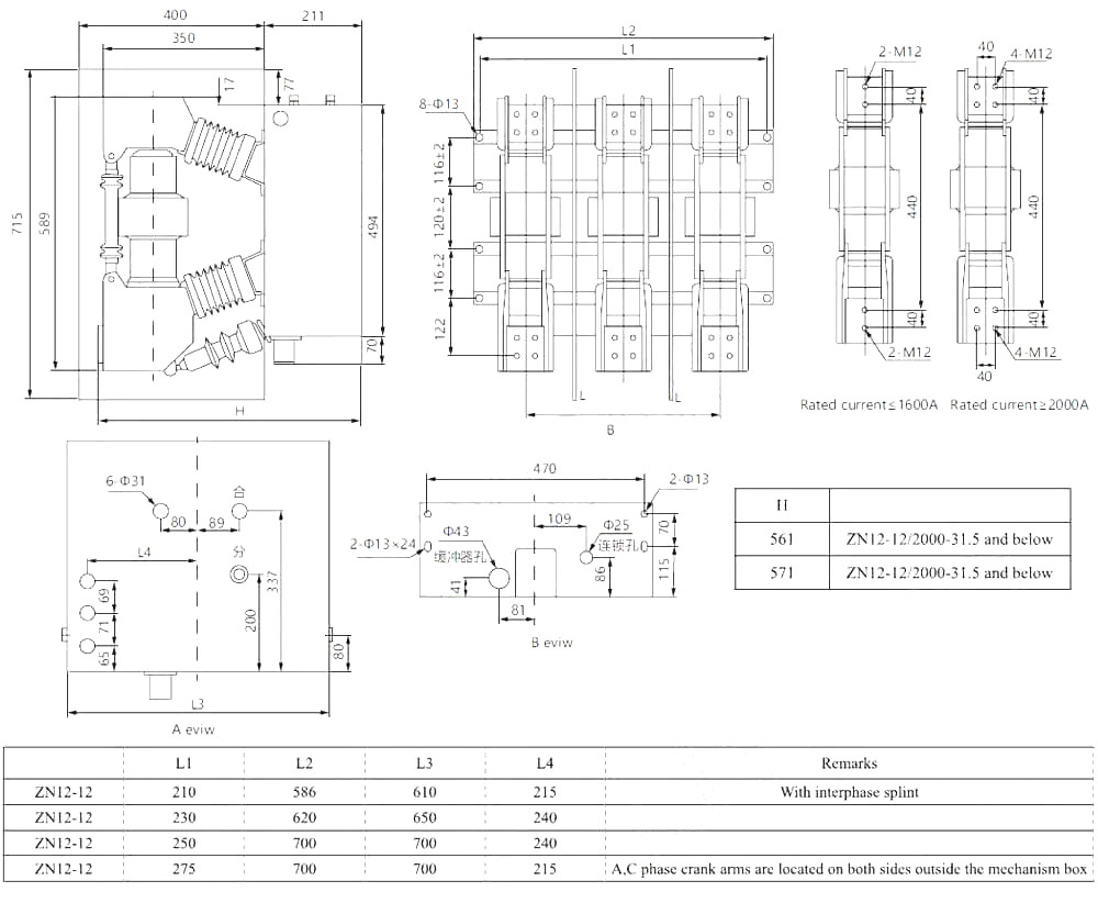 Высокие выключатели в серии Zn12-это высоковольтное устройство в помещении с номинальным напряжением 12 кВ, 24 кВ и 40,5 кВ и трехфазным AC 50 Гц. Это внутренний продукт, разработанный путем введения немецкой технологии Siemens 3AF. Операционный механизм автоматического выключателя - это тип хранения энергии пружины, который может работать с помощью переменного тока или DC или вручную. Выключатель цепи имеет простую структуру, сильную пропускную способность, длительный срок службы и полные функции работы. И нет никакой опасности взрыва, и обслуживание простое. Он подходит для контрольного или защитного переключения систем передачи и распределения электроэнергии, таких как электростанции, подстанции и промышленные и горнодобывающие предприятия, особенно подходящие для разрыва важных нагрузок и частых мест работы. Форма установки автоматического выключателя в шкафу переключателя может быть либо фиксированным типом, либо выключаемым автоматическим выключателем типа. Этот продукт соответствует соответствующим стандартам, таким как GB1984, JB3855 и IEC62271-100 «Выключатель высокого напряжения переменного тока».